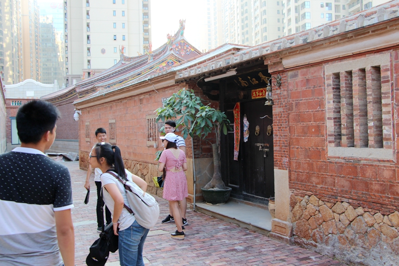 虽然只有短短三日,探寻在闽南与台湾架起的建筑文化桥梁和两岸人文的渊源以及对闽南古厝情怀的求知憧憬中,“启程”社会实践小分队为期三天的暑期社会实践活动先后来到了泉州中山路、泉州开元寺、中国闽台缘博物馆、泉州博物馆(闽南传统建筑展览馆)、晋江五店市以及晋江紫茂府现代仿古建筑等特色红砖文化地点。身临充满古建筑文化底蕴的古厝群中,队员们亲身感受到了经过历史沉淀的红砖文化魅力,看到一扇扇充满温暖而疏远记忆的大门里浮现出中国儒家文化的缩影。古民居建筑涵盖着科学、社会学、人文学等多项内容,突出了古人在兼顾地理环境、经济利益和文化传统三方面需求的高度智慧。古厝建筑蕴含着成熟的审美观,凝聚着世代传承的亲情,承载着浓厚的人气。在古厝中感受历史沉淀的红砖文化让我们宛如回到了“古早”的泉州。队员们结合自身所学专业,了解闽台文化局域特色,探寻闽南古建筑文化、建筑装饰文化,借此实践活动提升队员暑期实践活动的知识和技能体系,在实践中受教育、长才干、做贡献,在接受锻炼的过程中培育践行社会主义核心价值观。