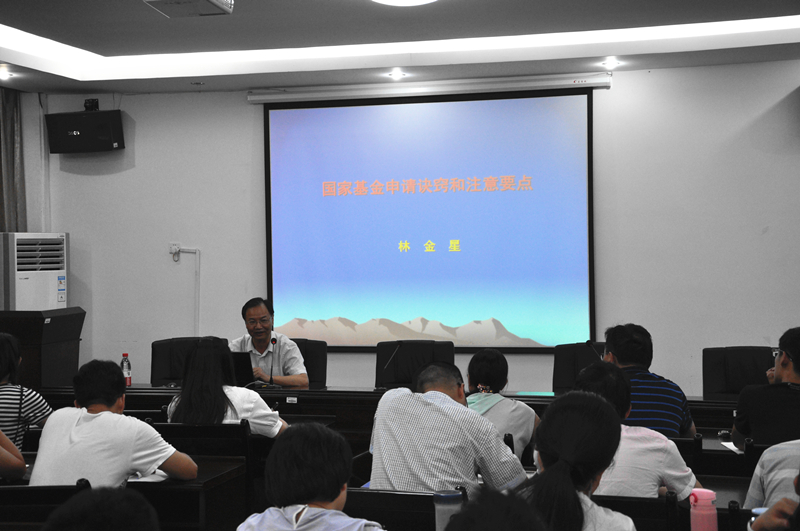 本网讯 8月29日,北京林业大学教授、博士生导师林金星教授应邀来到我院,为我院教师带来了一场题为“国家基金申请诀窍和注意要点”的精彩讲座。讲座由学院院长郑郁善教授主持。林教授旁征博引,精辟生动,使到场的教师们受益匪浅。