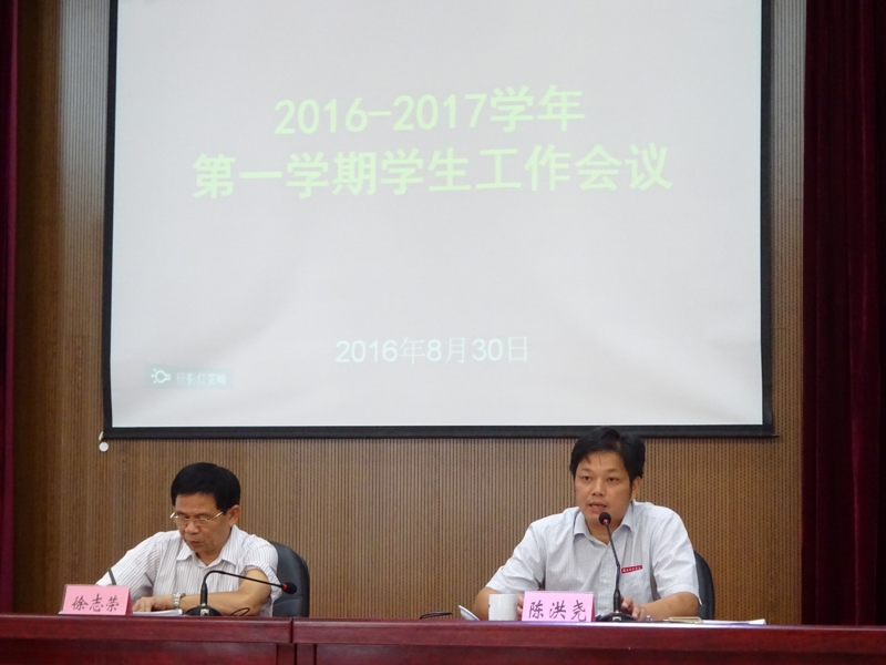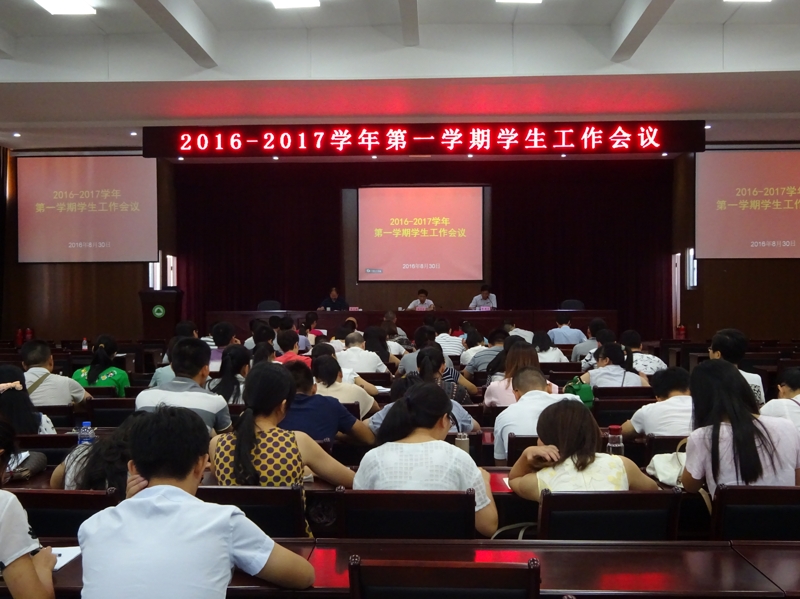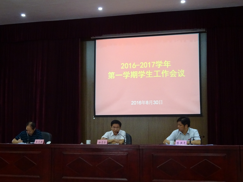本网讯 2016年8月30日,我院召开2016-2017学年度第一学期学生工作会议。学院党委书记徐志荣、党委副书记陈洪尧、院长助理郭先根出席会议。学生处、团委、招生就业办公室、保卫科等职能部门人员及各系学工组所有成员参加会议。会议由院长助理郭先根主持。