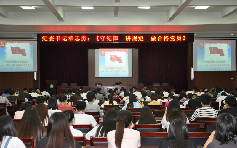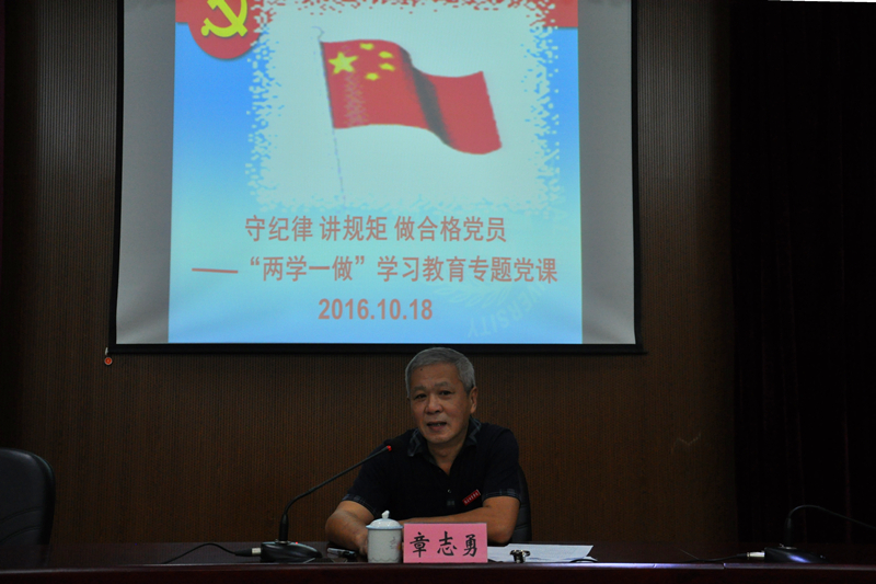 本网讯 为进一步深入开展“两学一做”学习教育, 根据院党委安排,10月18日下午,院纪委书记章志勇在江南校区礼堂上了题为《守纪律 讲规矩做合格党员》的专题党课。党课由党委副书记陈洪尧主持,学院全体师生党员听取了讲座。