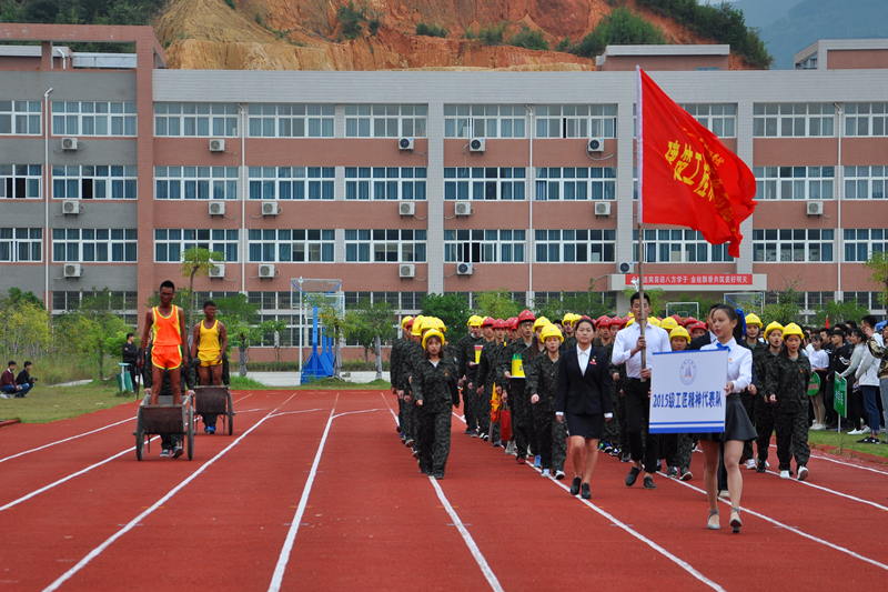 8:30,伴随着《运动员进行曲》激昂的旋律,各院系同学以整齐的方阵在国旗队、校旗队的引领下,昂首步入会场。嘹亮的口号彰显出同学们的青春风采和高昂斗志。在庄严的升旗仪式后,章书记致开幕词,他首先代表学院对校运会的召开表示热烈祝贺,对精心筹办运动会的工作人员表示诚挚的感谢。其次,他指出学院举办校运会是全面贯彻党的教育方针全面发展的必然要求,希望广大同学发扬“更快、更高、更强”的奥林匹克精神,并提遵守赛场秩序和规则。随后着党委副书记陈洪尧宣布开幕式开始,李志杰同学代表运动员宣誓,廖世喜老师代表裁判宣誓。