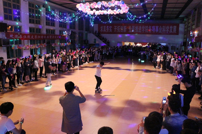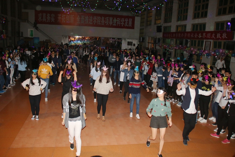 本网讯 2016年11月11日晚7:30,由经济管理系团总支主办的第六届假面魅影舞会在学院天麟校区礼堂拉开帷幕。这一夜,星光璀璨,彩灯闪烁,整个礼堂流淌着悠扬动感、激情四溢的舞曲。舞会在主持人精彩的开场白中拉开帷幕,欢快的兔子舞瞬间点燃了全场气氛,台上精彩炫目的舞姿惹动人心,台下微弱的烛火映照的光芒则是凸显了神秘的氛围;院轮滑社带来速度与激情的花样轮滑更是得到现场阵阵掌声,将此次舞会推向高潮;优雅动人的华尔兹交谊舞和特色的时装走秀让现场洋溢着艺术的高雅气息,用以舞会友方式,收获了友谊和欢乐。同时,舞会也不单纯拘泥于跳舞,其中还穿插了有趣的游戏互动和抽奖环节,充分增加了舞会的趣味性。最后,舞会在舞蹈串烧中落下了帷幕。