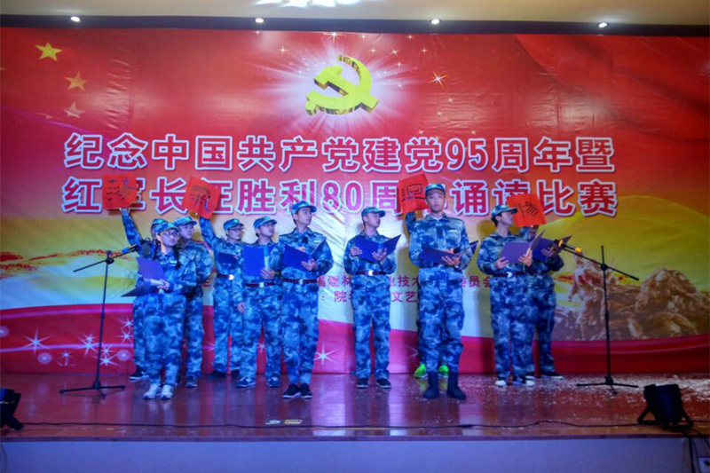 12月8日,院团委在江南校区礼堂隆重举行纪念中国共产党成立95周年暨红军长征胜利80周年诵读比赛。出席此次比赛的有建筑工程系党总支书记王云彪老师、艺术设计系学生科科长杨自绍老师、林学系学生科科长钱叶会老师、团委叶新颖、黄晓宁老师,还有各系学生参赛代表队等约200人。