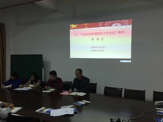 本网讯 为深入贯彻落实习近平总书记在全国高校思想政治工作会议上的重要讲话精神,12月26日晚,园林系学生党支部在系会议室召开全体党员干部座谈会,认真学习领会全国高校思想政治工作会议精神,支部书记陈剑勇主持了会议,全体在校师生党员参加座谈会,入党积极分子列席会议。