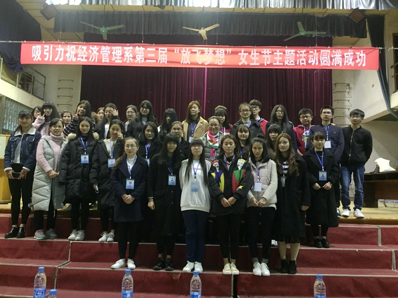 本网讯 为了庆祝女生节,丰富我系女生的校园生活,本着 “为女生服务,让女生受益”的原则,以培养学生学会认识自我,学会自尊自爱为主题, 2017年3月7日,经济管理系第三届“放飞梦想”女生节系列活动在天麟校区顺利开展。