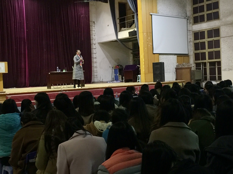 本次系列活动共包括两个方面:“送爱心,免费抽奖”和 “如何做一个魅力女神”心理讲座。在下午“送爱心,免费抽奖”的活动中,女生们踊跃参与,活动内容新颖有趣,不仅有套圈圈、扫描二维码赢小礼品,还有现场指导女生们学会化妆,最后女生们通过放飞爱心气球,放飞自己的梦想。晚上“如何做一个魅力女神”心理讲座于天麟校区礼堂举行,学生处心理咨询中心主任陈红英老师通过一系列小活动活跃了现场,女生们羞涩的心理很快被活跃起来,积极参与其中,在陈老师的引导下学会认识自己、接纳自己,认识到自尊自爱的重要性。