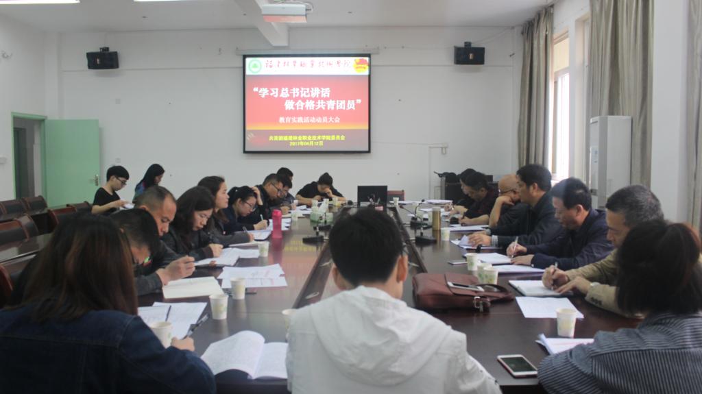 本网讯 为贯彻团中央、团省委的部署,深入开展“学习总书记讲话 做合格共青团员”工作,2017年4月12日上午,院团委在江南校区实训二5楼会议室召开“学习总书记讲话 做合格共青团员”教育实践活动动员部署大会,学院党委副书记陈洪尧、各系分管学生工作的党总支书记、副书记、各系团总支负责人、团委委员等参加会议,会议由团委副书记李霞主持。
