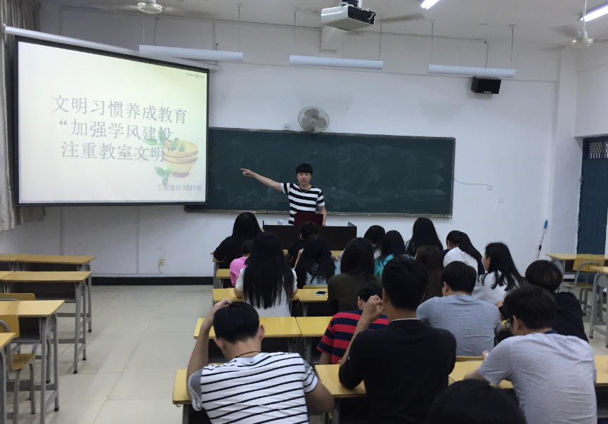 本网讯为贯彻学院《大学生文明行为养成教育实施方案》,更好地建设班级学习风貌,创造一个更有利于同学的学习环境,交通工程系近期开展了以“加强学风建设,注重教室文明”为主题的班会活动。