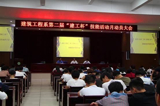 本网讯 2017年4月18日晚,建筑工程系在江南校区礼堂召开第二届“建工杯”技能活动月动员大会。学院副院长严绍裕、系主任郑金兴、副主任彭忠伟及全系师生参加了动员大会。会议由郑金兴主任主持