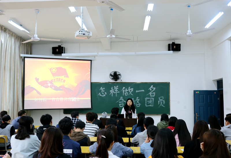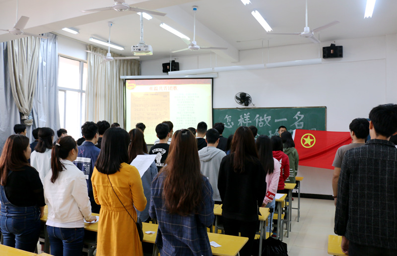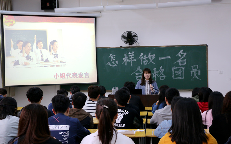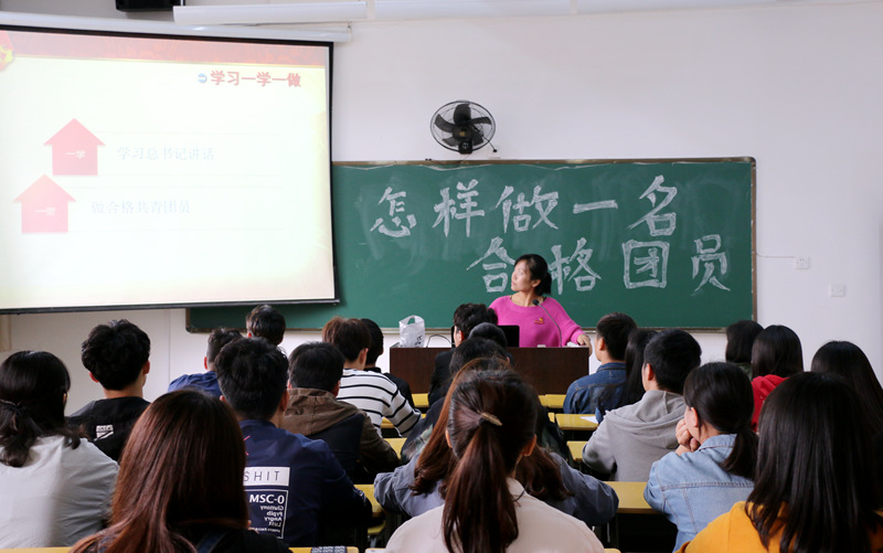 4月27日下午3:30,由陈静、陆晓莉老师组织策划的“怎样做一名合格团员”主题团课在实训四703举行。学生处副处长李霞老师、系党总支副书记徐洪老师以及系部全体专职辅导员到场观看了此次活动。活动首先由陈静老师解读了“一学一做”的内涵,在观看了视频《少年,你了解中国共产党吗?》之后,分小组讨论了“如何做一名合格的共青团员?”,团员青年们各抒己见,分别从思想、学习、生活上发表了自己的观点和看法。接着举行了隆重的重温入团仪式,团员青年们高举右手,字字铿锵地宣誓,饱含激情地唱响团歌。团员代表在仪式结束后做了发言,表了态度。最后,李霞老师走上讲台,对本次活动进行点评,她高度肯定了活动的意义,并对在场的团员青年提出了希望和要求,为本次团课划上圆满的句号。