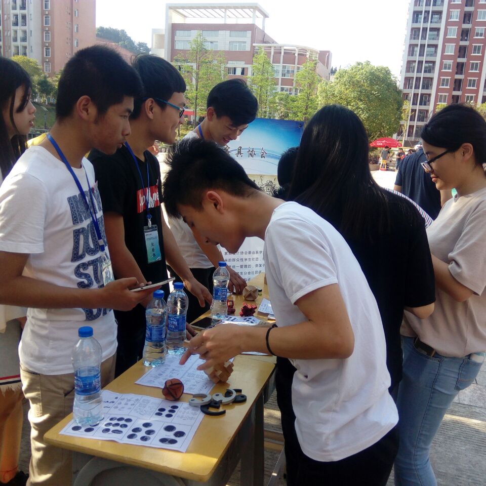 首先开始的是在公寓6号楼后的羽毛球场进行的速认电脑品牌。同学们通过观看各种电脑商标,快速认出手中的各类电脑品牌,完成游戏。并快速跑向下一个目的地——人工湖,开始“巧解鲁班锁”的游戏。说时迟那时快,同学们一个个眼疾手快的将鲁班锁拼好,并与队友一起跑向下一目的地,一路上同学们与队友一路小跑的奔向三食堂二楼。