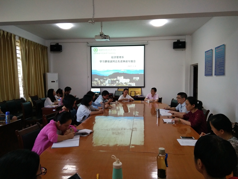 为深入学习贯彻习近平总书记关于廖俊波同志先进事迹的重要指示精神,进一步把向廖俊波同志学习活动引向深入。5月9日下午,经济管理系党总支在系会议室召开学习廖俊波同志先进事迹专题会。会议旨在引导全系教师学习先进、不忘初心、扎实工作、奋发有为。本次会议由经济管理系党总支书记谢福荣主持,系全体教职工参与会议。