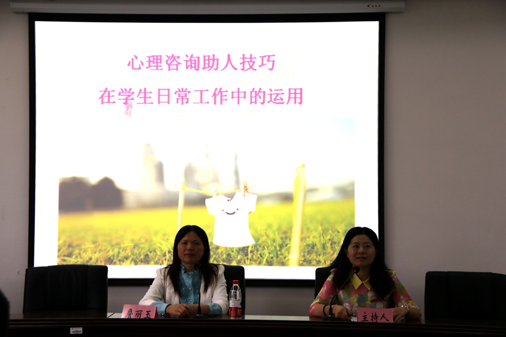 5月12日上午,福建农林大学心理咨询中心副主任、副研究员詹丽玉应邀到我院作题为《心理咨询助人技巧在学生日常工作中的应用》专题讲座,全院学工系统人员共50余人参加了本次讲座,讲座由学生处副处长李霞主持。