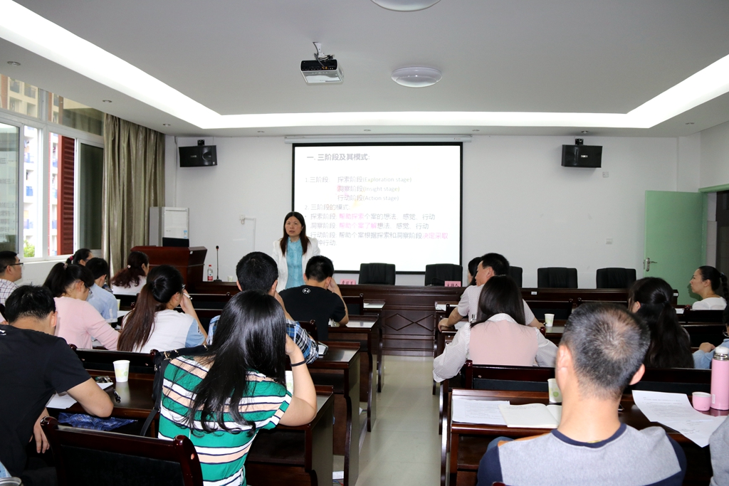 詹丽玉副研究员的讲座从“助人三阶段模式在学生日常工作中的应用”、“学工人员的自我心理健康调节”两方面展开。讲座中,詹丽玉老师用丰富的案例、生动幽默的语言详细讲解了在工作中如何与学生建立良好的关系,探索并了解学生真实的想法和感受,鼓励学生在思想上、感受上和行为上确定自己的角色,帮助学生真正解决问题;同时詹老师告诉学工人员如何在工作学会自我保护、自我调节以获得幸福感和成就感。