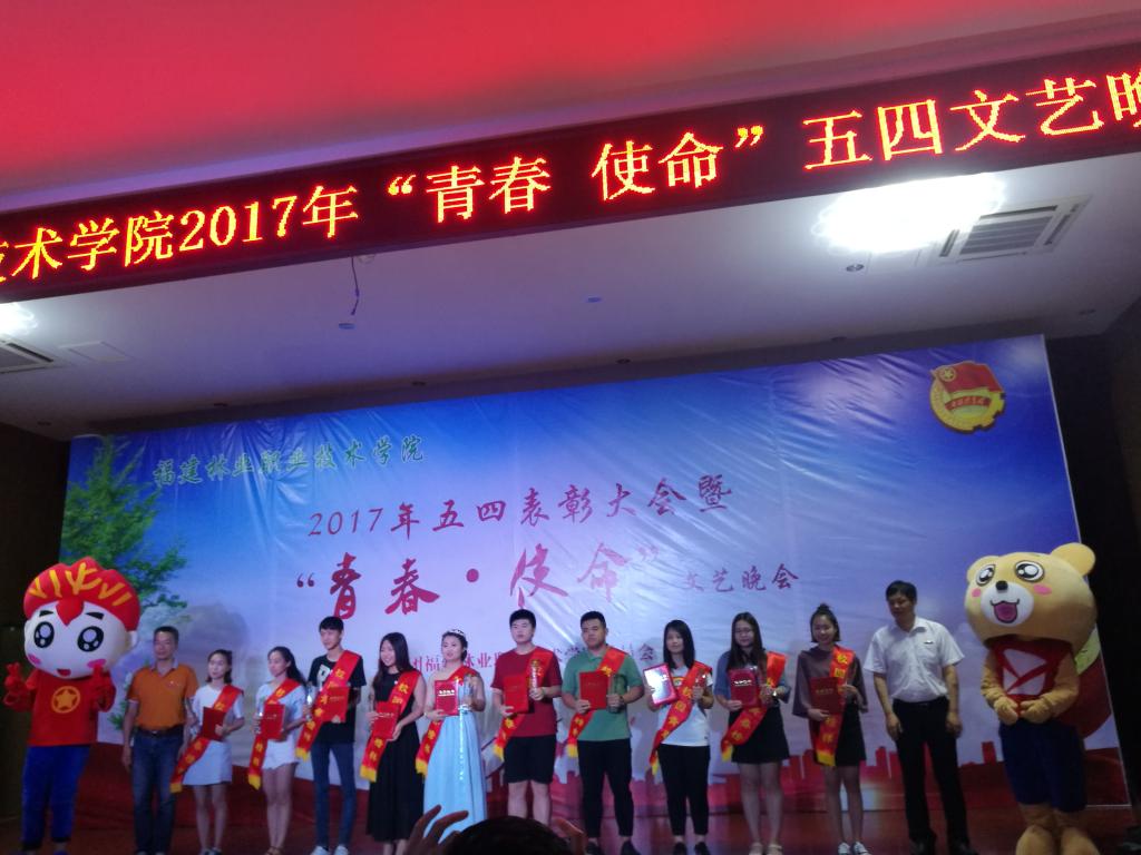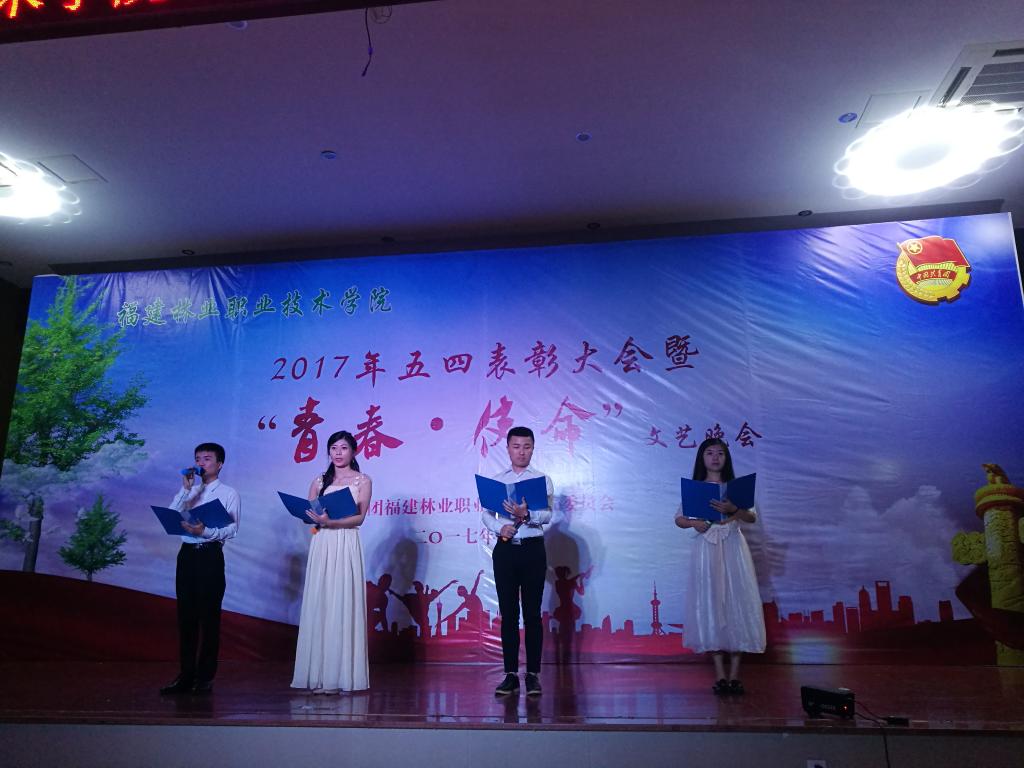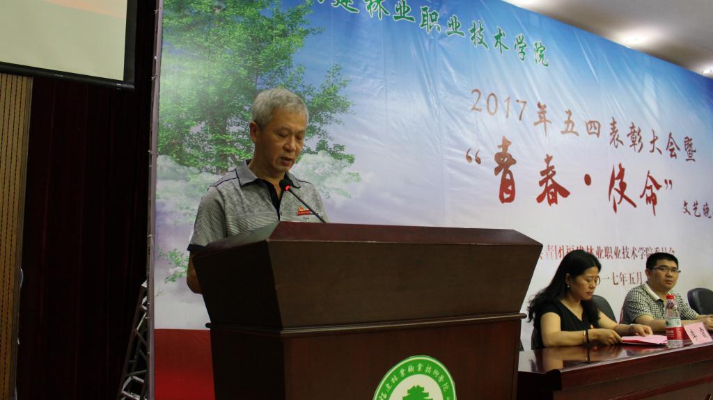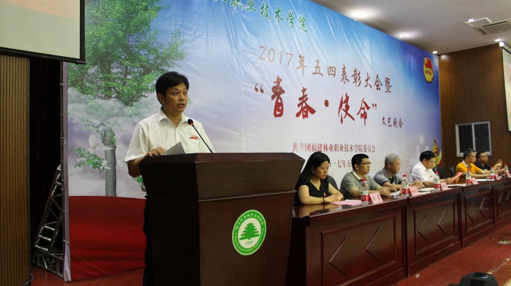 大会在庄重的团歌声中拉开序幕。党委副书记陈洪尧和纪委书记章志勇分别宣读《关于2017年“五四”表彰的决定》、《福建林业职业技术学院关于表彰2017年度校园“青春榜样”的决定》。随后,主席台领导分别为获奖者颁奖。颁奖仪式后,建筑工程系团总支丁灵妍老师代表获奖集体和个人发言。