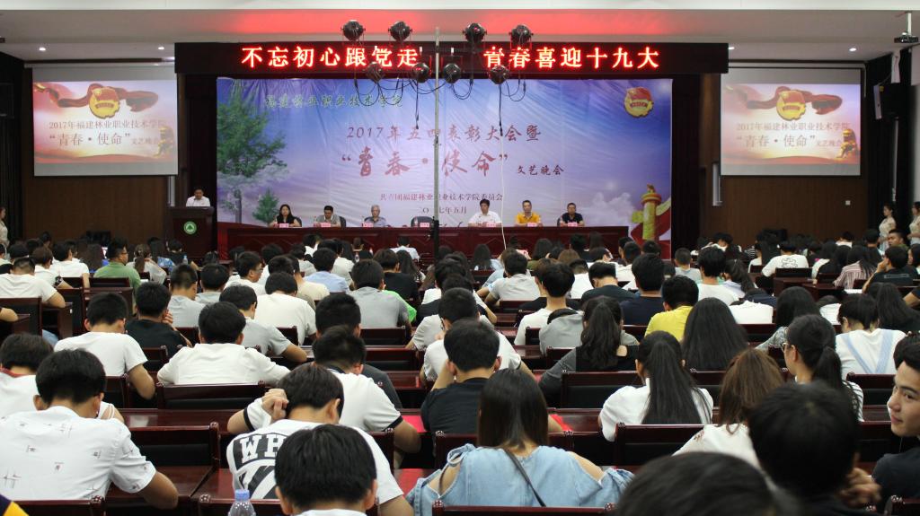 本网讯 为表彰先进,树立榜样,激励和引导广大青年师生弘扬“五四”精神,凝聚青春力量,5月23日晚19时,福建林业职业技术学院2017年“五四”表彰大会暨“青春·使命”文艺晚会在学院江南校区礼堂隆重召开。院长郑郁善、党委副书记陈洪尧、纪委书记章志勇莅临会场,学院各系党总支书记、副书记、学生科长、团总支书记、辅导员、青年团员代表共400余人出席大会。大会由团委副书记李霞主持。