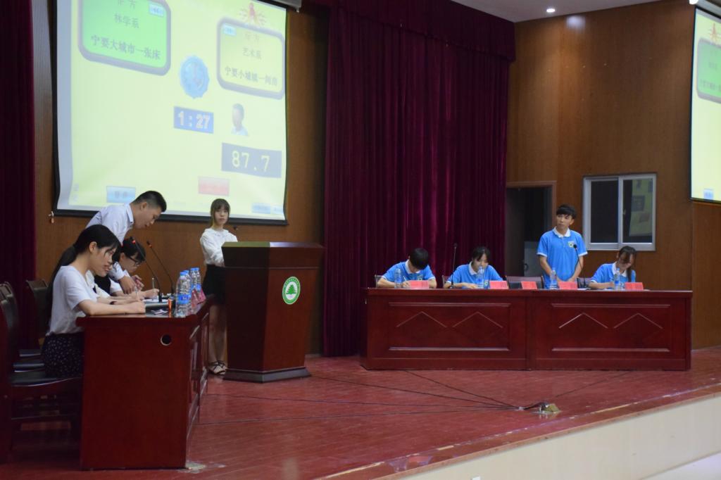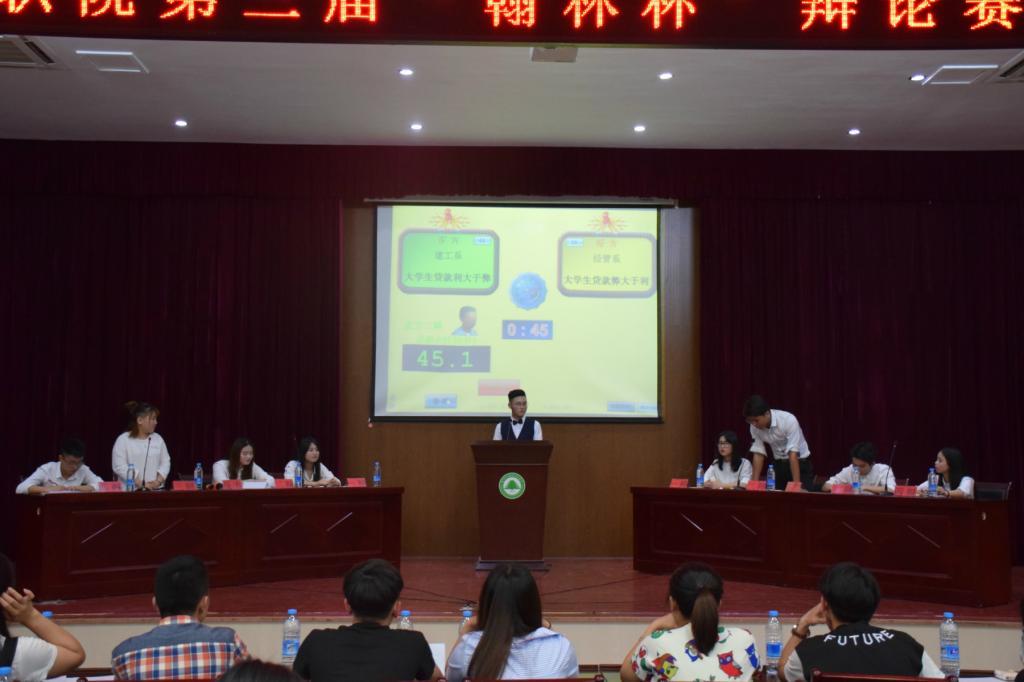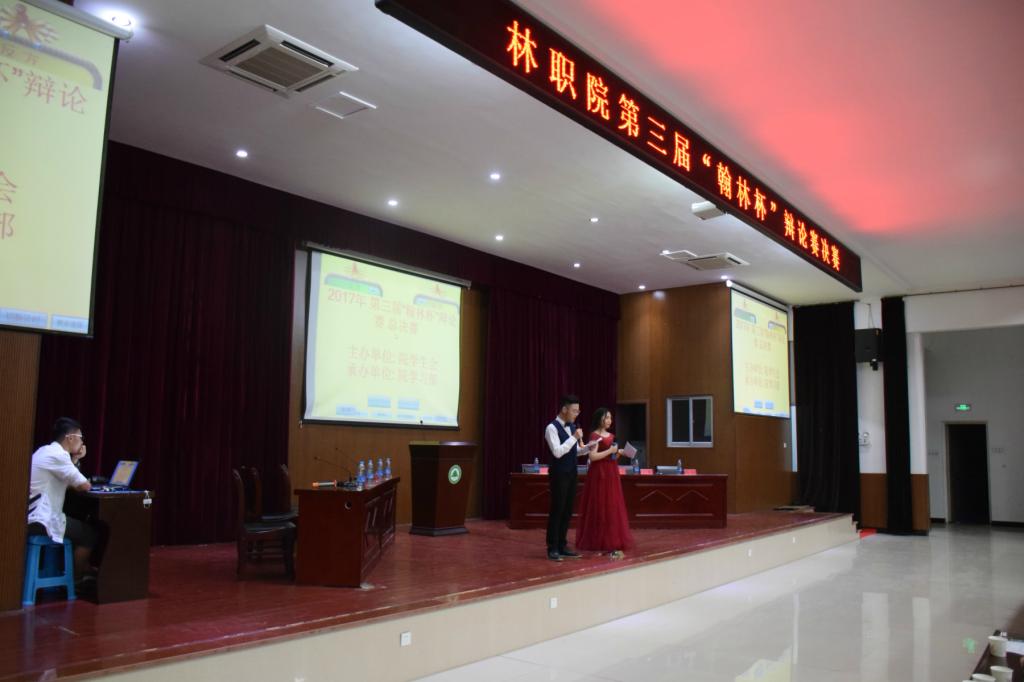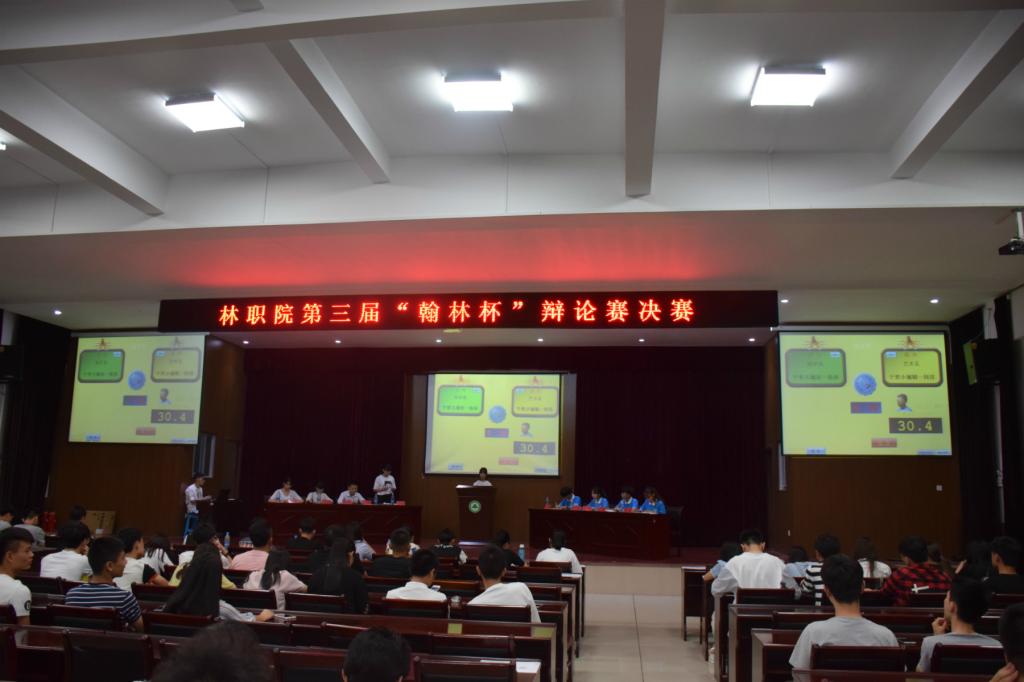 本网讯 5月25日晚,由院学生会主办、院学习部承办的第三届“翰林杯”辩论赛决赛在江南校区礼堂举行。林学系代表队、建筑工程系代表队、艺术设计系代表队和经济管理系代表队会师决赛。建筑工程系辅导员丁灵妍老师、园林系辅导员吴锦鸿老师和我院200多名学生一同观看了比赛。