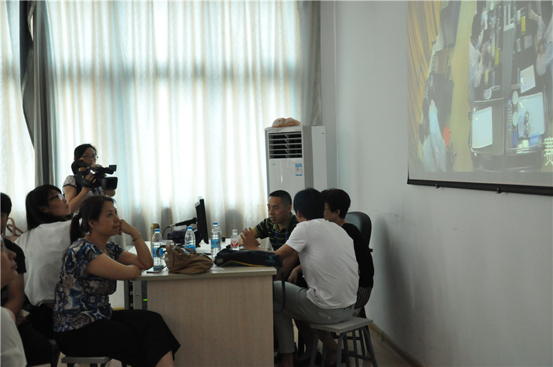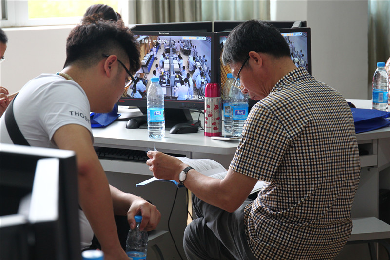 选手们进入比赛,指导老师们在志愿者们的引导下,来到观摩室休息 等待,观看着赛场的情况。