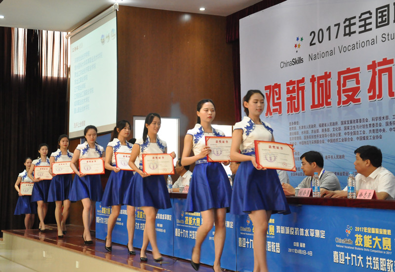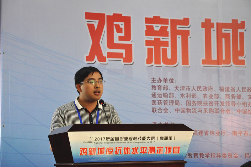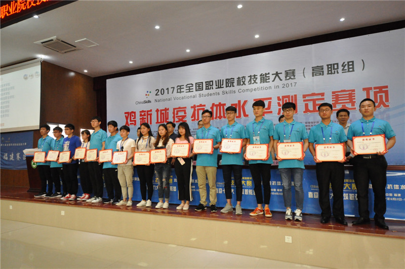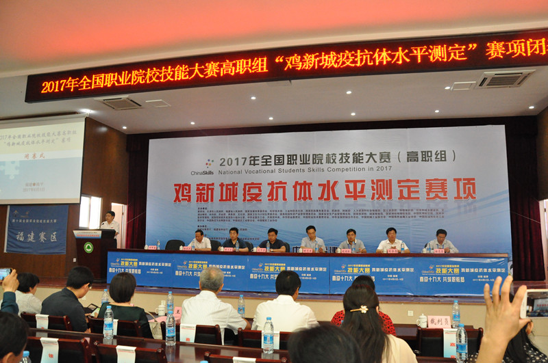 本网讯 经过全体裁判员的辛勤工作和146名参赛选手的奋力拼搏,6月5日上午,2017年全国职业院校技能大赛(高职组)“鸡新城疫抗体水平检测”赛项在福建林业职业技术学院江南校区礼堂圆满落幕。