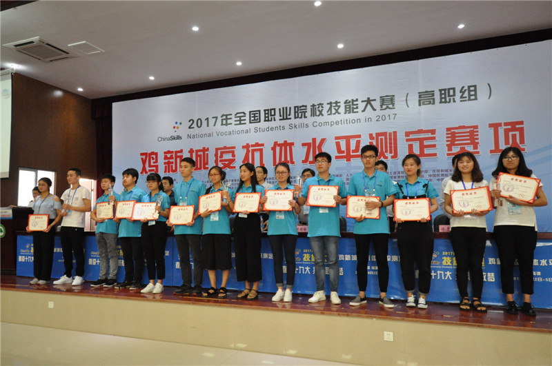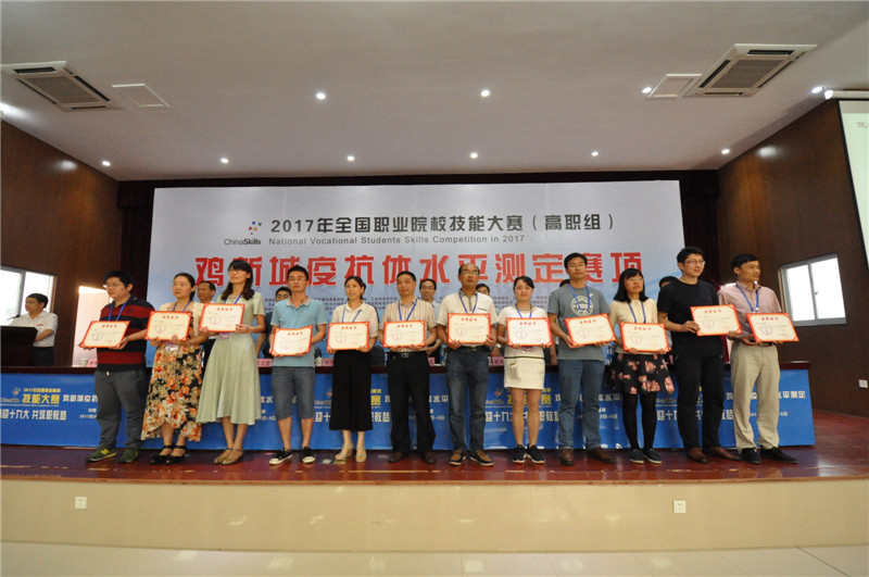 2017年全国职业院校技能大赛(高职组)“鸡新城疫抗体水平检测”赛项至此正式落下帷幕。各位参赛选手在比赛中严格遵守各项赛规赛纪,服从指挥,赛出了水平,赛出了风格,赛出了友谊。此次技能大赛既检阅了职业院校学生的技能水平和培养质量,展示了选手娴熟的技能、良好的素养和奋发的精神。同时,这也是我院首次举办全国职业院校技能大赛。作为该项大赛的协办方,我院将一如既往地支持国家的高职教育发展,为祖国职业教育做出应有的贡献和力量。