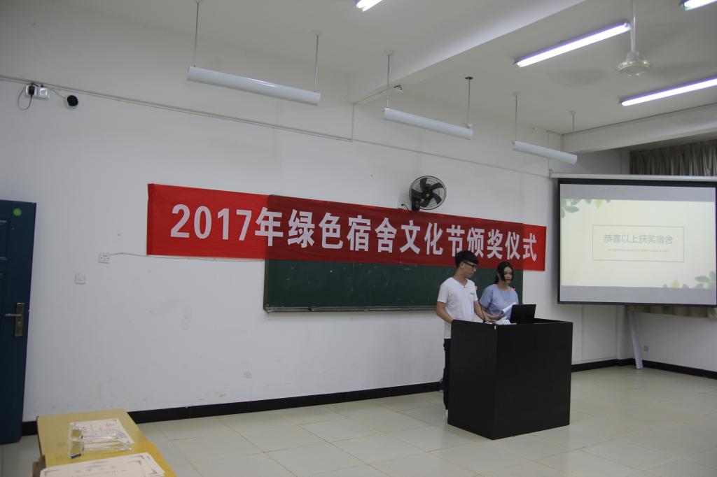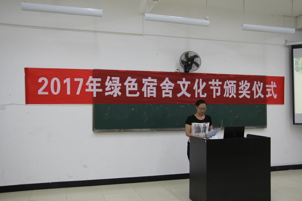 大会伊始,陈红英主任致开幕词,他指出传承绿色宿舍文化,不仅可以全面提高自身综合素质,而且能够增进彼此间的了解与友谊,希望大家能够保持积极向上的态度,努力消除安全隐患,为建设优秀文明宿舍贡献力量。随后,陈红英主任宣读四月份优秀文明宿舍名单,并由到场的领导嘉宾分别为获奖宿舍颁奖。颁奖结束后,大家观看了2部优秀宿舍微电影作品。最后,学生处吴旻老师进行总结发言。他从人身安全、素质教育、习惯养成三个方面对宿舍管理工作进行指导,希望同学们能积极参与到宿舍文化的各项活动当中,养成良好的生活习惯,创造一个良好的学习生活环境。