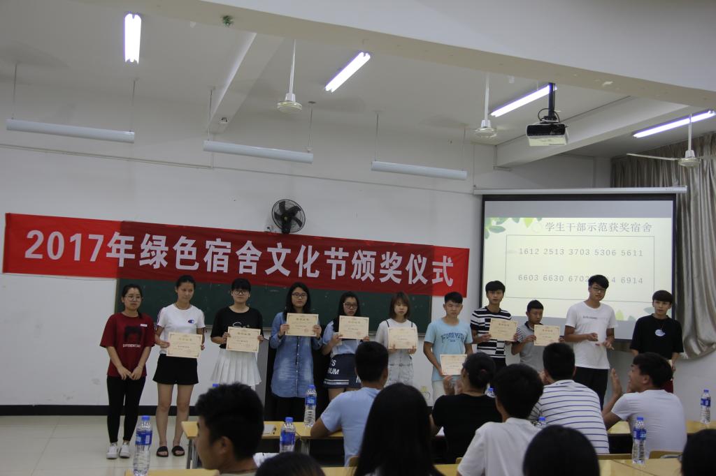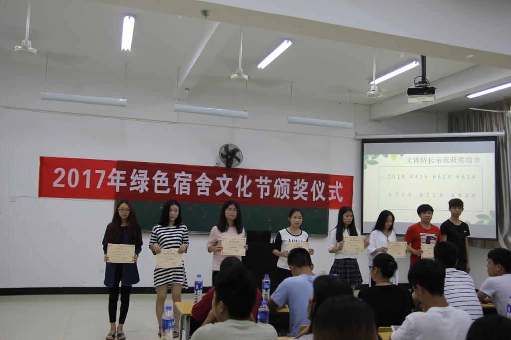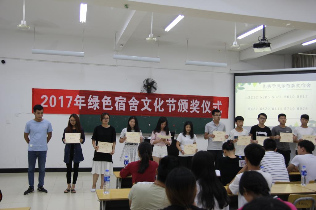 本网讯 为丰富我院学子的校园文化生活,进一步营造良好的学生学习生活环境,2017年6月15日晚,我院学生会举办第二届以“行为养成”为主题的绿色宿舍文化节表彰大会。出席本次活动的嘉宾领导有:学生处心理咨询中心主任陈红英、学生处吴旻老师、学生会副主席叶湖松和各系学生会干部。