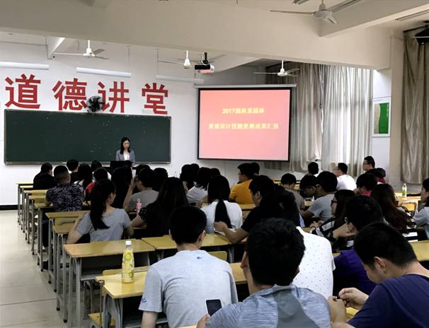 本网讯 为提高园林系园林类学生专业知识和技能操作水平,丰富同学们的课余文化。2017年6月20日,园林系在实训四310举办了第一届园林景观设计大赛汇报会,共有18组选手参赛。汇报会由园林系邱雯老师主持,危静美、张莹及陈剑峰三位老师作为此次比赛的评委出席。