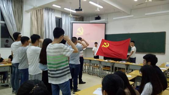 最后,全体正式党员和预备党员在陈剑勇书记的带领下,面对党旗再次进行尊严的宣誓,进一步强化了师生党员的宗旨意识、模范意识和服务意识。