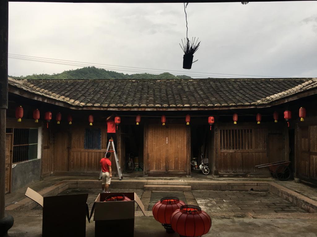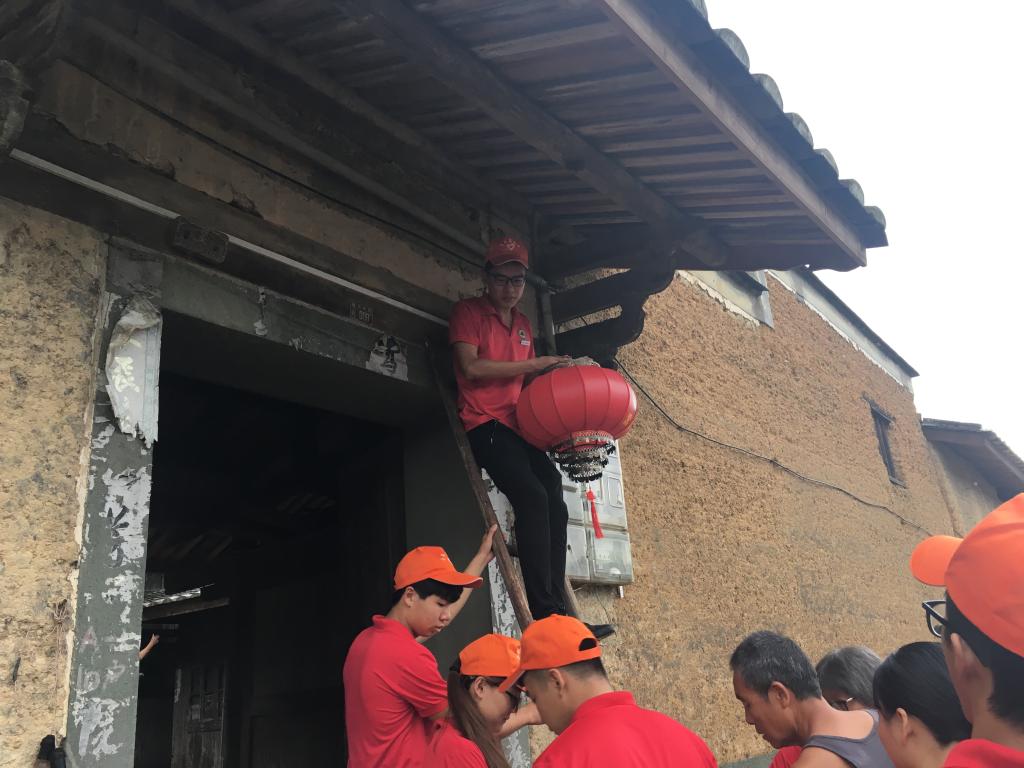 在走访过程中,同学们热情为村民提供资助政策咨询同时解答相关资助问题,发放相关政策材料,为当地村民了解国家大学生资助政策提供了渠道。同时,了解到福湖村2016年建档立卡贫困户共计1户4人,在精准扶贫过程中,同学们帮助户主进行柚子林的种植。同学们还了解到近期福湖村正在进行美丽乡村建设,村里的灯笼正愁无人挂。热心的同学们二话不说,揽下了挂灯笼的活,并认真采集好安装地点。从搬运、组装、到接电路,挂灯笼,全程负责到底,历经4个小时的努力,完成了湖福村民俗馆、兰家大院、雷家大院等地近200盏灯笼的安装工作。夜幕降临,村里的灯笼亮了,孩子们也笑了。