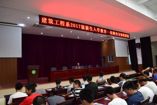 本网讯 为了让新生能够更好的适应大学生活,营造良好的校园环境。建筑工程系于2017年9月18日晚,在江南礼堂为2017级新生开了一堂“建筑工程系新生入学教育——法制安全知识讲座、奖助贷、党团组织讲座”的主题活动。系党总支书记王云彪、专兼职辅导员以及全体2017级新生出席会议,讲座由王云彪书记主持。