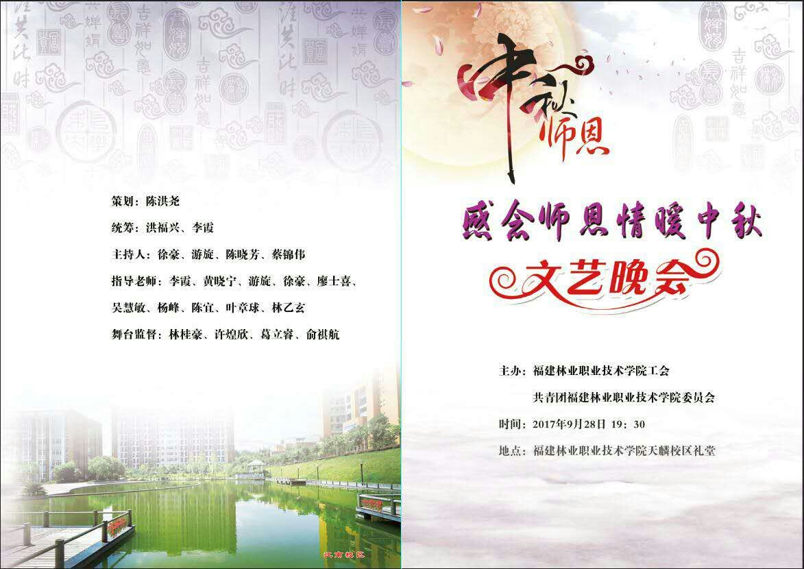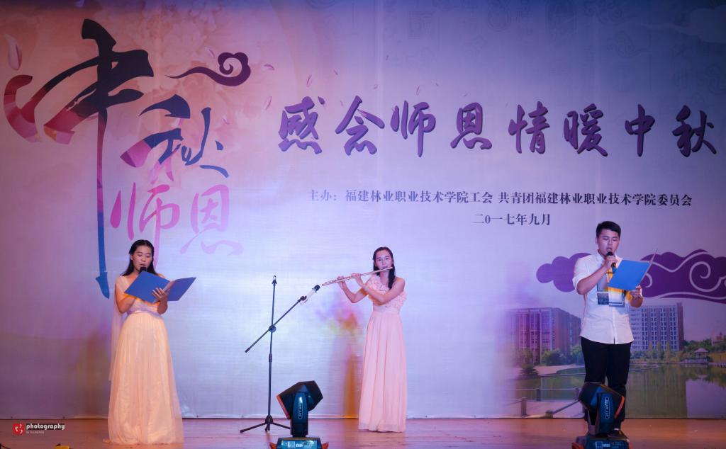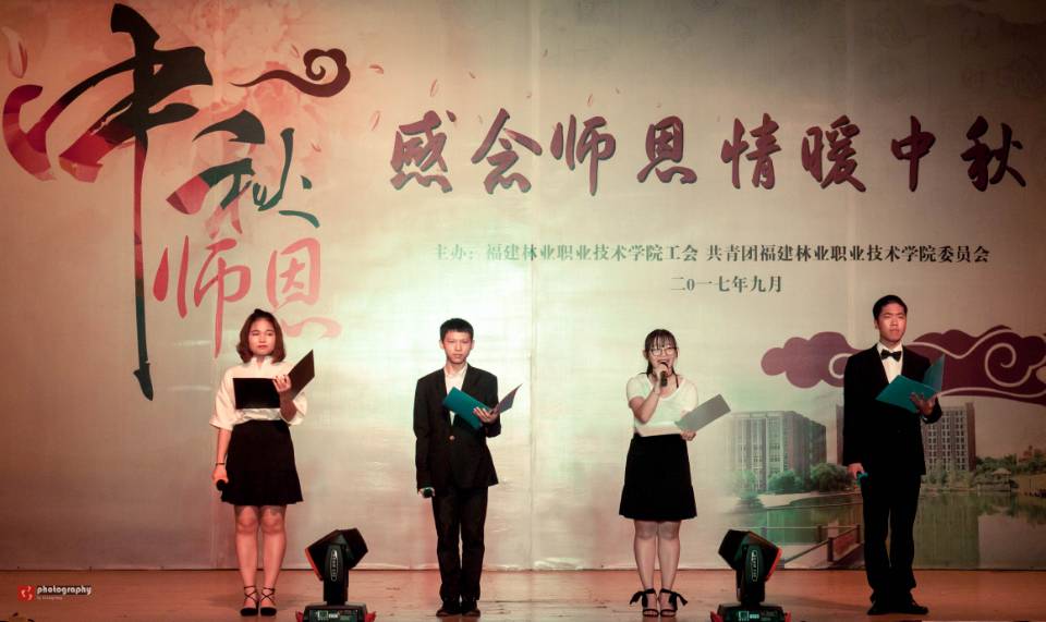 本网讯 值此丹桂飘香,秋色迷人的金秋时节,我们刚刚度过第33个教师节,又即将迎来中华人民共和国的第68个国庆节和中华民族的传统佳节——中秋节。9月28日晚上,值此双节来临之际,由福建林业职业技术学院工会、团委联合共同主办的“感念师恩,情暖中秋”文艺晚会在学院天麟校区礼堂隆重举行。学院全体教职工观看了晚会。
