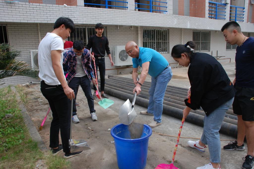 院领导与全体教职员工根据分组,个个热情高涨,干劲十足,对校园实训楼、教室、办公楼、食堂、人工湖周边等公共区域进行了全面清理打扫。