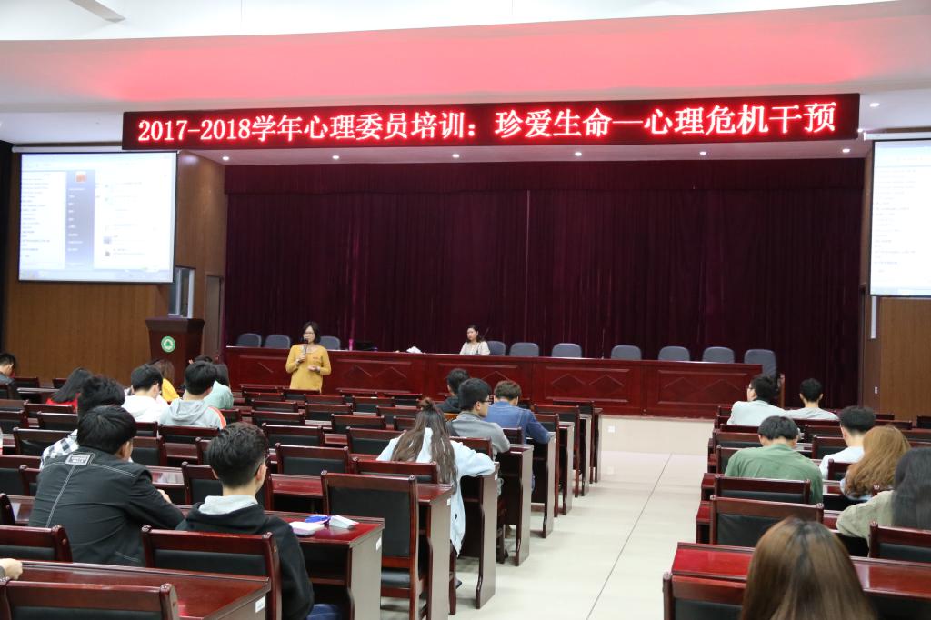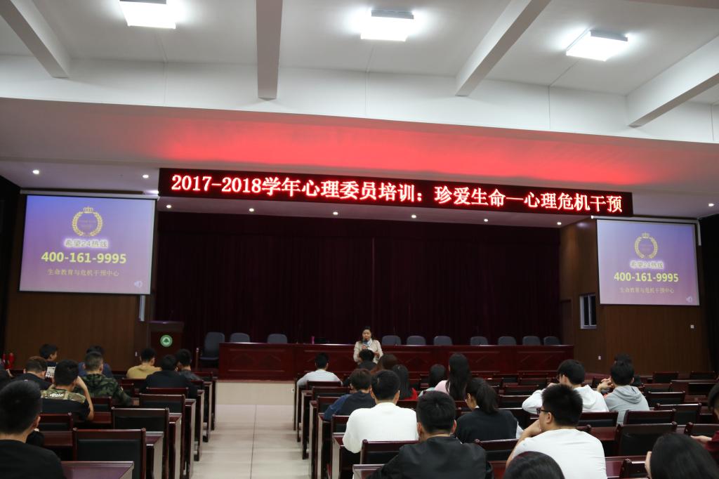 本网讯 11月14日晚,心理咨询中心特邀国家二级心理咨询师、希望24热线宣讲员茅木花老师到校作《珍爱生命——危机干预五法宝》主题宣讲,学生处心理咨询中心主任陈红英主持,江南校区各班心理委员共计100余人到场学习。