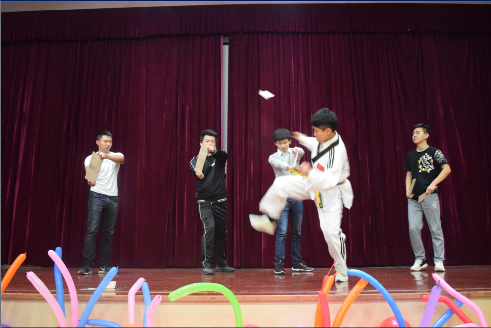中华武术,博大精深,历史悠久;中华武术具有多彩的形式,丰富的内容和深邃的文化意蕴,是中华民族的文化精粹,紧接着由武术协会的同学们带来舞狮和刀棍表演。