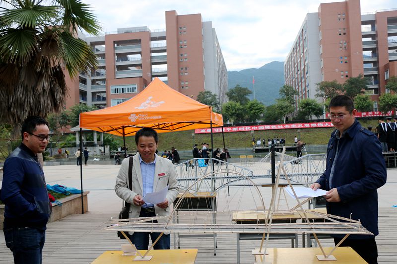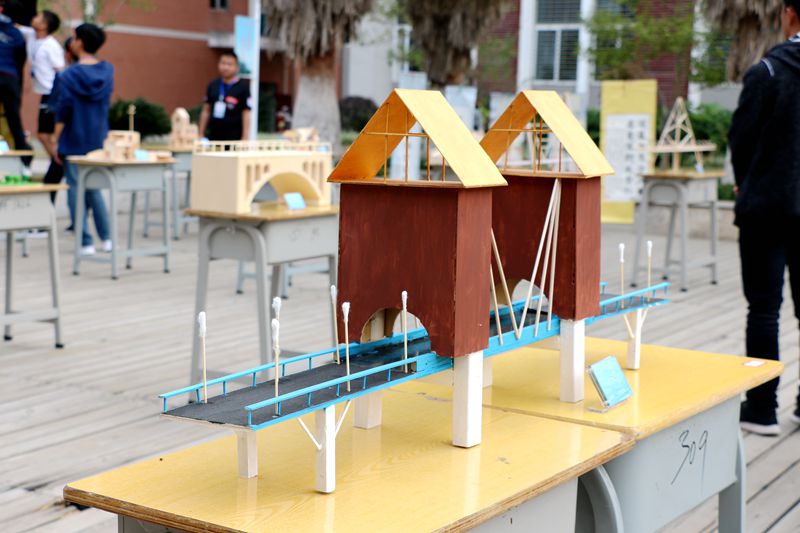 比赛现场引来很多师生驻足欣赏,许多专业老师到场担任了评委,他们依据参赛作品的构思、制作原理、制作材料等评选出优秀的作品。此次比赛将评选出桥梁类和房建类优秀作品各6件。