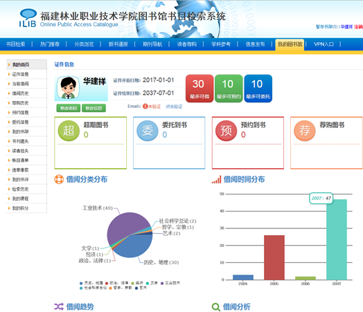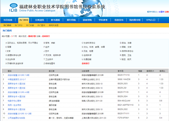 该系统采用江苏汇文软件有限公司的V2.0版图书管理系统,已于7月中旬完成软件系统的部署,11月中旬完成了所有用户的数据清洗工作。新的汇文图书管理系统充分体现了图书馆文献共建共享理念,支持网络联合订购、联合编目、馆际互借,支持开放系统的数据交换和批量查重;满足读者个性化需求,提供热门推荐、可视化分析、借阅趋势图、学科导航等功能;新增了图书的到期、超期、荐购等提醒服务;OPAC公共查询令馆藏书目的检索体验大为改善。新系统为图书馆更好地开展网络化、数字化、专业化、人性化的业务服务搭建了更高的平台,更好地契合了现代图书馆开放、规范和以读者为中心的发展和服务理念。