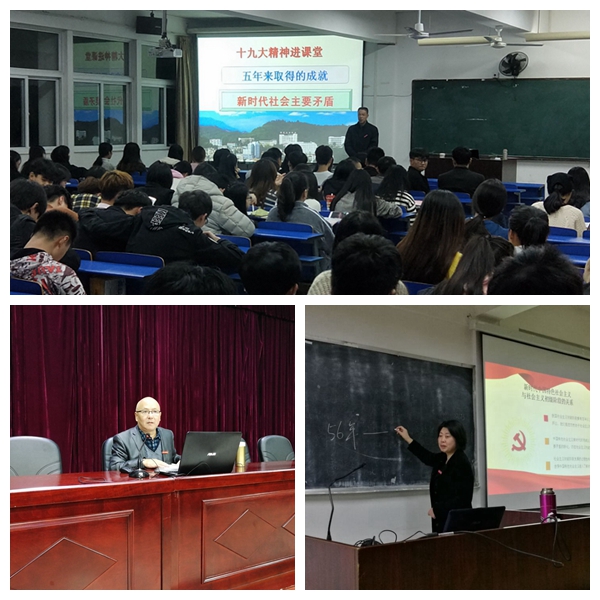 据悉,为了认真学习贯彻党的十九大精神,学院党委下发了《关于认真学习宣传贯彻党的十九大精神的通知》,明确各级党组织的职责和任务,强调要组织专题学习研讨,认真抓好全员培训,创新学习方式方法。组建了由学院领导班子成员、思政部教师和相关专家组成的“学习贯彻党的十九大精神宣讲小分队”,深入各系各部门,面向全体师生开展多形式、分层次、全覆盖的党课、讲座。思政部在全校师生中开设了以学习党的十九大精神为主要内容的形势与政策课,组织成立了“习近平新时代中国特色社会主义思想读书社”,引领青年学生深学笃用习近平新时代中国特色社会主义思想,在广大青年学生中掀起学习宣传党的十九大精神的热潮。