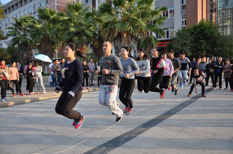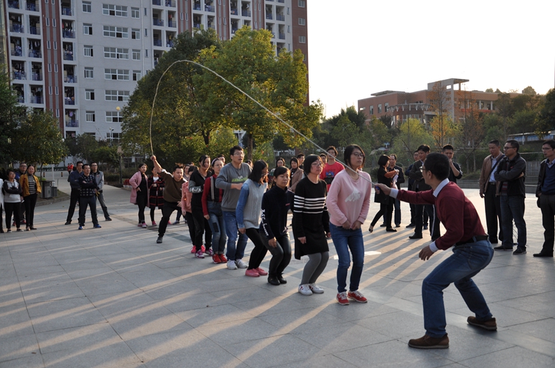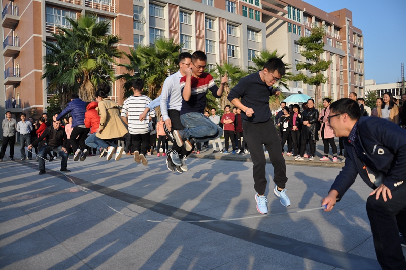 本网讯 为了活跃教职工文化生活,增强团体的凝聚力,进一步推动全民健身运动的广泛开展, 12月5日下午,院工会在江南校区举行冬季教工跳绳比赛。
