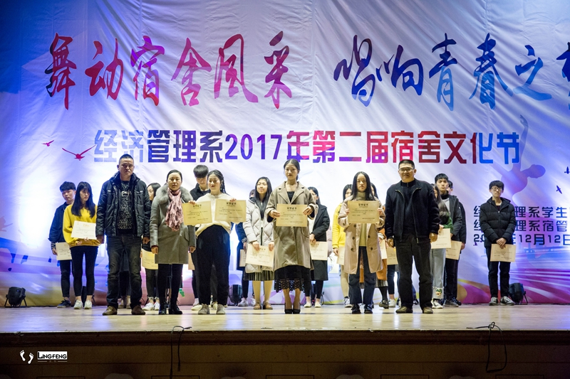 2017年12月12日晚,经管理第二届宿舍文化节之舍歌大赛决赛暨颁奖盛典于天麟礼堂举行。本次活动由经管系学生团总支主办,经管系宿管部、女生部承办。出席本次活动并担任评委的有经管系党总支书记谢福荣老师,经管系副主任林文胜老师以及我系多位专兼职辅导员。