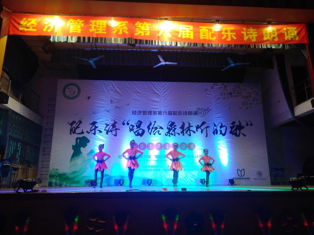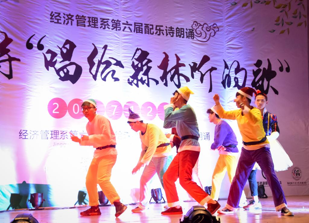 本网讯 为进一步打造绿色校园文化建设,号召广大青年学生走进森林、体验森林、热爱森林、保护森林、大力支持森林文化建设,2017年12月26日,经济管理系在学院天麟校区礼堂举办“唱给森林听的歌”配乐诗朗诵比赛。本次活动经过层层选拔,历经初赛和复赛,最终由来自经济管理系各年级各专业的十组选手进入决赛。经济管理系党政领导及相关老师出席活动并担任评委。