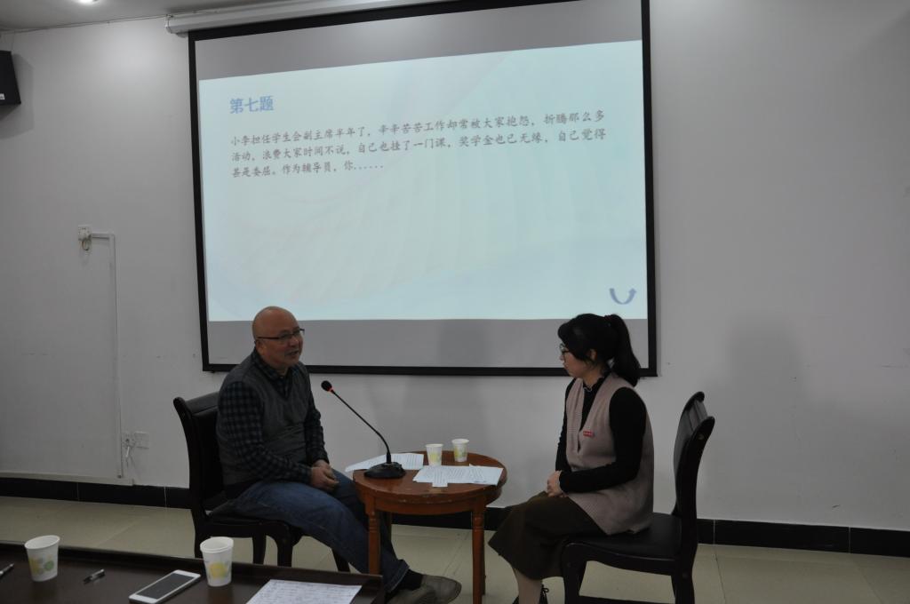 最后全体评委对今天的比赛进行了精彩点评,他们表示:通过一年来的学习与工作积累,本届比赛与上届比赛相较,辅导员们的谈心谈话水平明显有了较大的提升,表现优秀,特别是老辅导员身经百战,通过比赛能看出在带学生的过程中所积累的经验对于处理各类学生问题十分有帮助。他们也提出几点要求与希望:一是辅导员还须在日常工作中拓宽知识面,了解并熟悉各项法律法规和学校各项管理制度,借大力宣传学院重新制订的《学生管理规定》之机,加强自身学习;二是学会换位思考,拉近与学生的距离,能与学生产生共情,得到学生的信任是做好辅导员工作最基本的要求;三是在日常工作中加强与学生的交流,学习用慧眼观察学生,了解学生,在实践中磨炼水平,积累经验,才能做到有的放矢;四是加强心理知识学习力度,提升谈心谈话技巧水平,方能做到事半功倍。