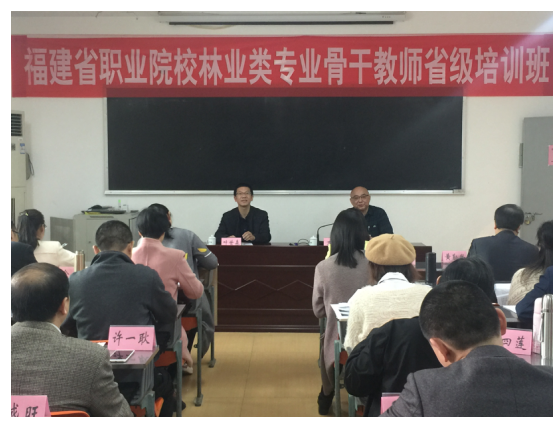 本网讯 3月27日,福建省2018年职业院校专业(林业类)骨干教师省级培训班在我院天麟校区顺利开班。学院党委副书记、院长万泉,副院长叶世森及来自全省18所职业院校共40名骨干教师参加了开班式。开班式由叶世森副院长主持。万泉院长在开班式上代表我院党委、行政对来自全省18所职业院校的参训学员表示热烈欢迎,并就本次培训的一些前沿理念作了精彩的发言。