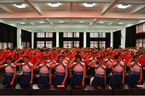在建筑工程系接站组志愿者代表郑海防同学的带领下,全体志愿者举起右拳,进行了庄严的宣誓,直冲云霄的誓词让我们看到了志愿者的昂扬的精神面貌和奉献的决心。