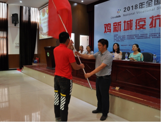 最后,陈洪尧副书记为志愿者代表授旗并发表讲话。他指出,同学们接过的不仅是旗帜,接过的更是光荣,是使命,也接过了对国赛志愿工作的支持与热爱。同学们在大学期间能有机会参与全国职能大赛的组织和服务工作,是一件十分光荣的事情,同时也是一份沉甸甸的责任,希望同学们以饱满的热情投入到各项志愿服务中,以实际行动展示我院学子良好的精神风貌。