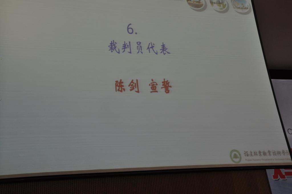 随后,参赛选手代表来自漳州职业技术学院的曾艳鸿同学和大赛裁判员代表陈剑分别宣誓。