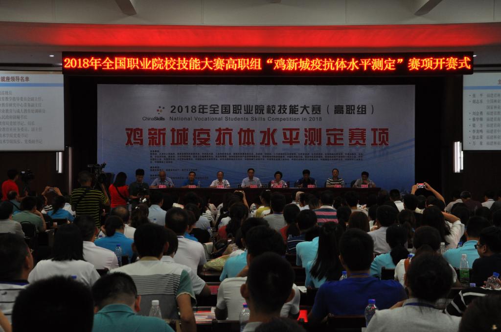 本网讯 5月26日下午,2018年全国职业院校技能大赛高职组“鸡新城疫抗体水平测定”赛项开赛式在学院江南校区礼堂隆重举行。