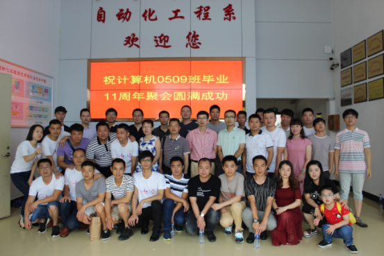 本网讯 翰墨飘香迎六月,丹青溢彩传友情。6月10日上午,自动化系计算机0509班学子怀着对母校的深情厚谊,重返校园共叙同窗情,在我系党总支书记、系主任谢金生,办公室主任黄立靖,教师代表蔡尊煌、林志鹏、刘张榕、陈志伟等陪同下,参观实训三并进行座谈。