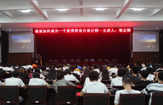 面对16、17级建筑室内设计专业与建筑装饰专业的200多名学生,邹志刚总监侃侃而谈,就“如何成为一名优秀的室内设计师”提出了他的思考与见解。讲座伊始,邹总监便抛出“设计细节”这一问题,指出室内设计与现实生活息息相关,设计即创意,需要不断地琢磨学习。接着,邹志刚先生结合自身的设计理念与工作经验,以设计效果图为基础为同学们系统地讲述了室内设计相关前沿理论,设计风格发源、发展等相关专业知识。在讲座过程中,邹总监特别提醒同学们把握当下,抓紧对基础学科知识的学习,增强动手能力,提高专业技能,他指出无论是技术还是学历对建筑领域从业者来说都至关重要。在短短一个半小时的讲座中,邹志刚总监由简入深地帮助同学们理解了自己的专业定位与设计师这个职业,并以丰富的阅历,幽默的语言,将枯燥的专业知识精彩生动地讲述出来,令现场听讲的同学们深得启发,备受感染。