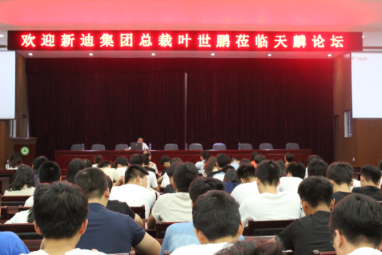 本网讯 7月3日晚七点,新迪集团总裁叶世鹏先生莅临我校“天麟论坛”,于江南校区礼堂开展讲座。讲座由自动化工程系党总支副书记、学工组组长范有福主持,自动化工程系全体辅导员及部分制造类专业学生参加。