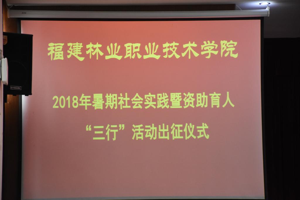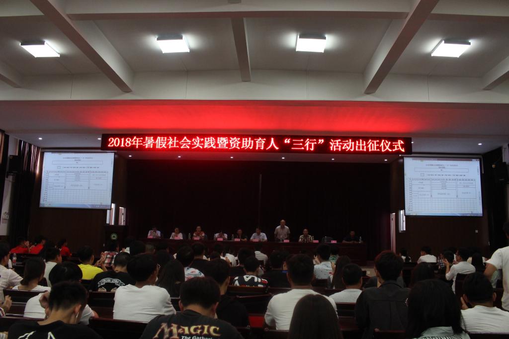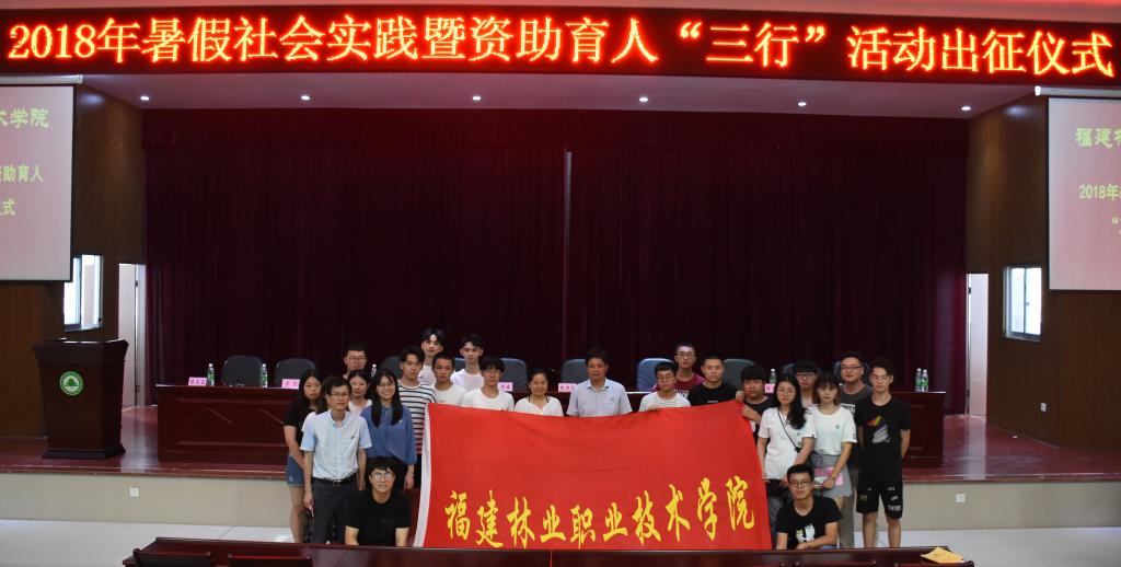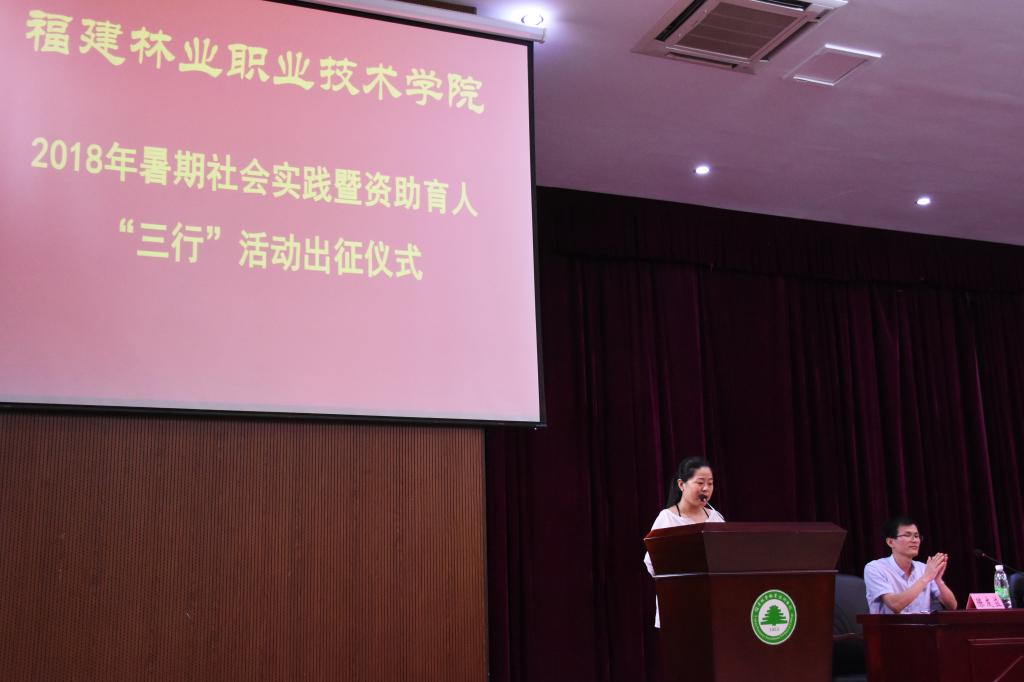 本网讯 2018年7月12日下午四点半,福建林业职业技术学院2018年暑期社会实践暨资助育人“三行”活动出征仪式在江南校区礼堂隆重举行。院党委副书记陈洪尧,学生处副处长、团委副书记李霞及各系学工组长、副组长应邀到会。2018年暑期社会实践团成员及指导老师约150人参会。大会由团委办公室主任陈友益主持。